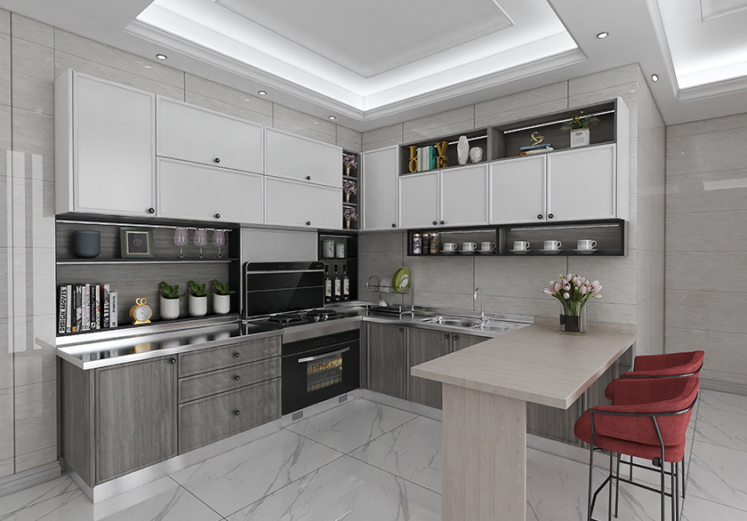 富兰卡橱柜秋意印象是一款将烹饪于休闲娱乐融合一体的产品,延展性极强的开放格设计,台上柜于吧台的巧妙设计,让我们的居家环境更加融合统一。